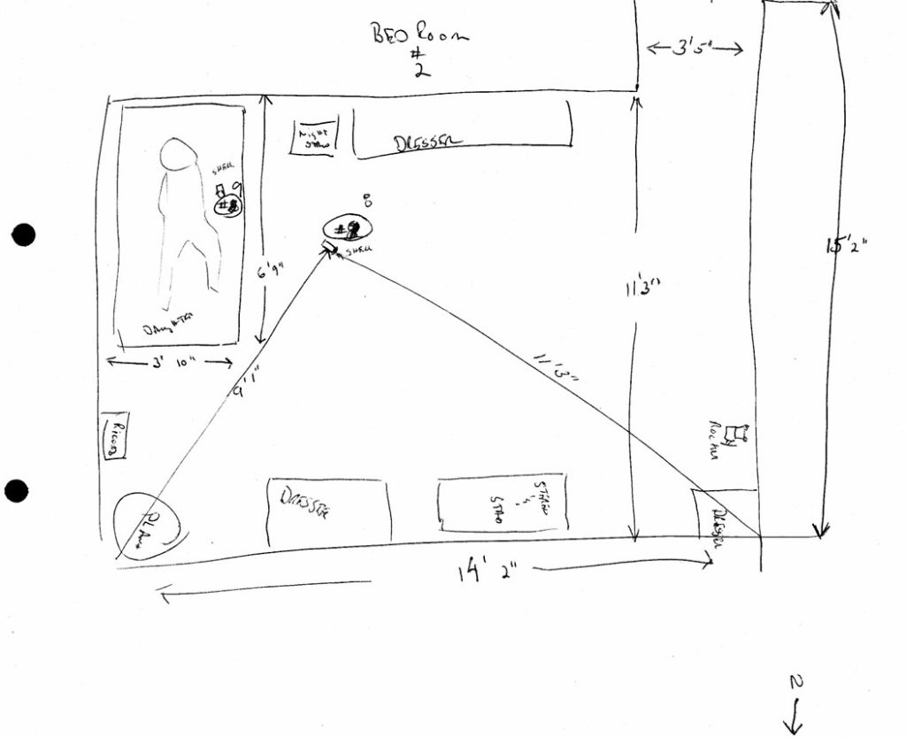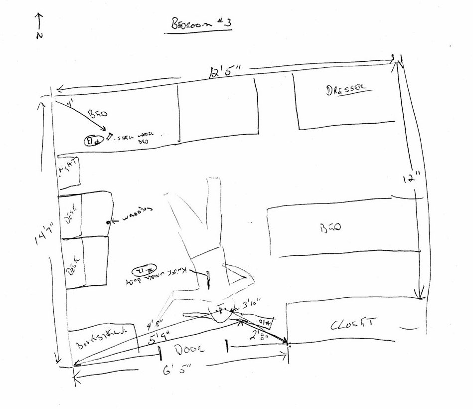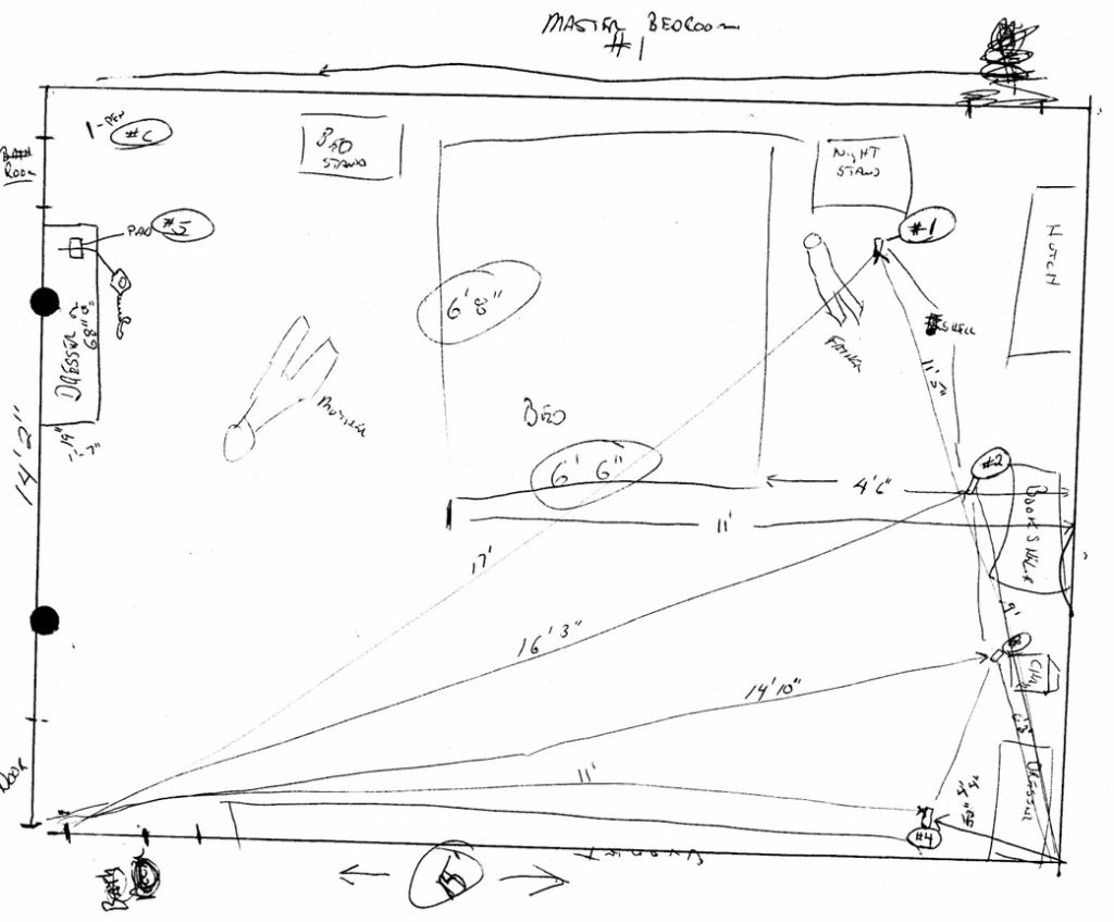 The master bedroom is referred to as Bedroom 1 in the case file. This is where the bodies of John and Mary Jane were located. Both are found on the floor by the sides of their bed.